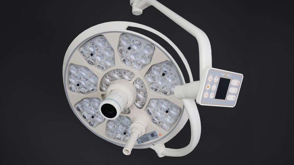 The LED6 MC is an operating theater light for diagnosis and surgery. The electronic brightness is controlled on the light head and the size of the light field can be easily adjusted using the sterilisable handle.