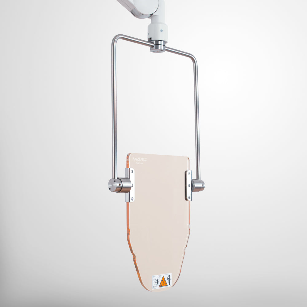This radiation protective shield is specially optimized to meet the requirements of urological interventions and provides effective radiation protection for the skull of the examiner.
